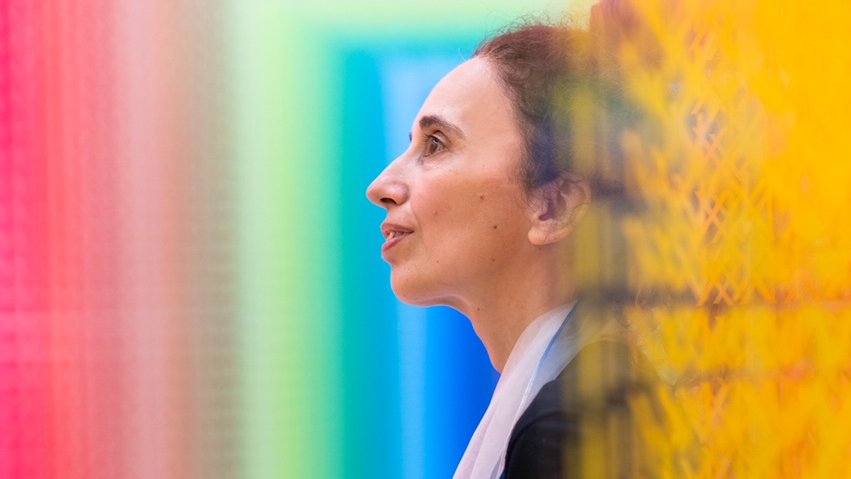 無限の色の旅。歩くたびに作品の表情が変わり、無限に変容する複雑な魅力が生まれる。色が無限に続くように、ブルガリの未来も続いていくよう願いを込めている。